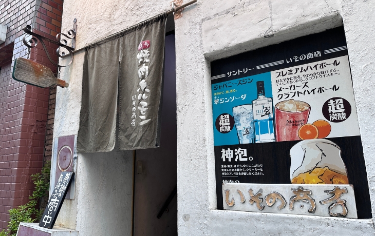 七輪で焼いたお肉を堪能できるほか、ランチタイムにはカレーも提供中。昼飲みも可能です。