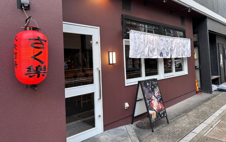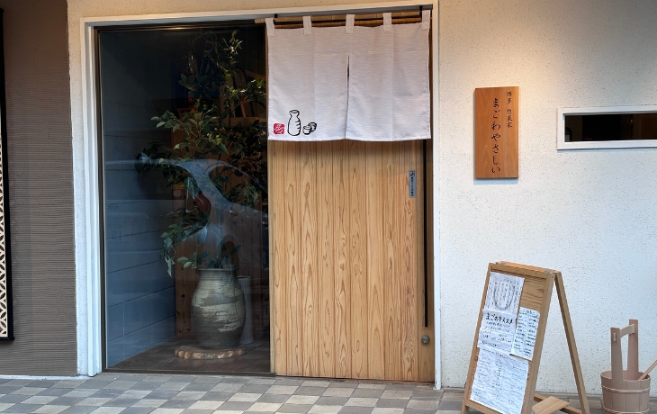 天神南駅から地上に出て、三越や大丸を背にして裏天神エリアの弥太郎うどんが見えたら、横断歩道を渡りつつ右折して、少し歩けば見えてくるお店です。