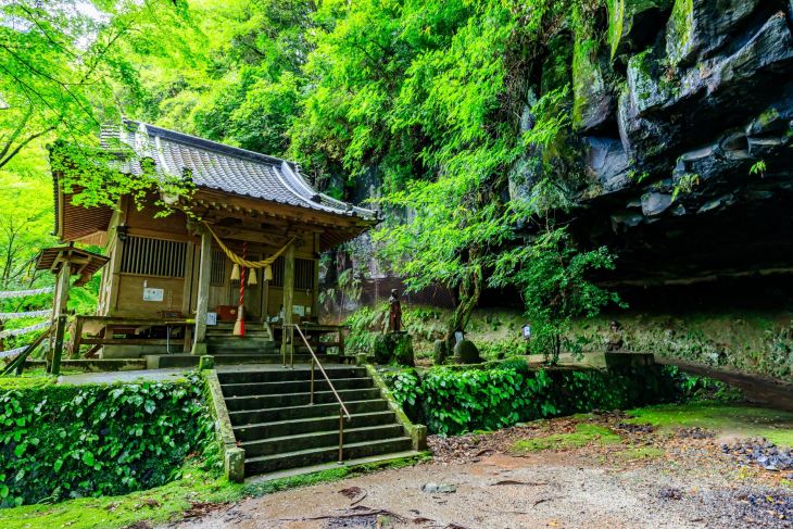 その名の通り、女神「八女津媛」を祀った神社で、境内にある岩屋「神の窟」の天井から滴る雫は、八女津媛が顔を洗った石清水という素敵な言い伝えがあります。