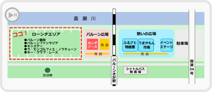 会場内には例年、ローンチエリアのほか、バルーン広場や憩いの広場が設けられ、売店(屋台)も多く出店するようです。